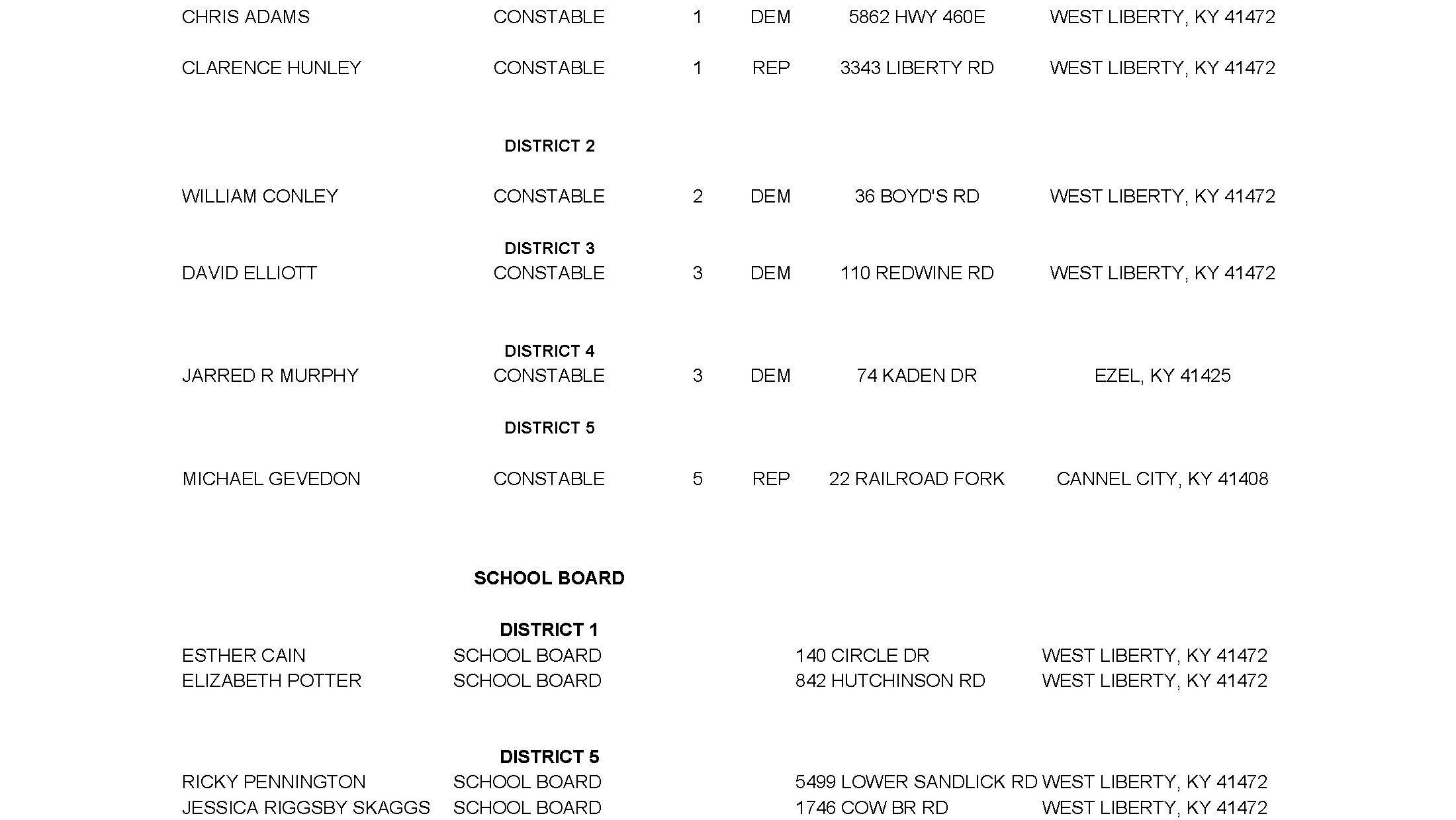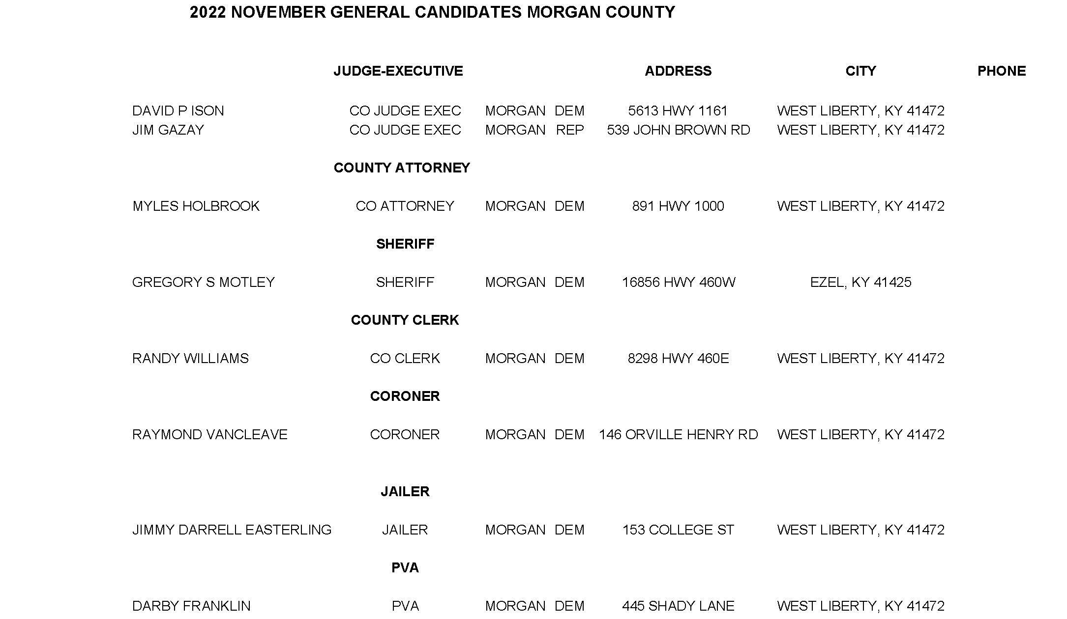 2022 General Election Candidates